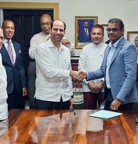 La firma fue realizada entre el señor Ramesh Ghir, CEO de Cheddi Jagan International Airport (CJIA) de Guyana, y el señor Frank Elías Rainieri, presidente de Grupo Puntacana.